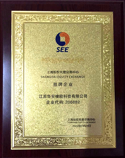 2015年7月29日,隨著張總與王總一起敲下掛牌金鑼,江蘇華安橡膠科技有限公司(企業代碼: 206882)登陸上海股權托管交易中心股權報價系統,順利邁出與資本市場對接的第一步。